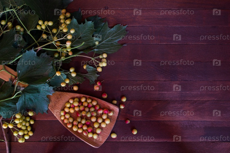 Рябина на деревянном фоне с копией пространства