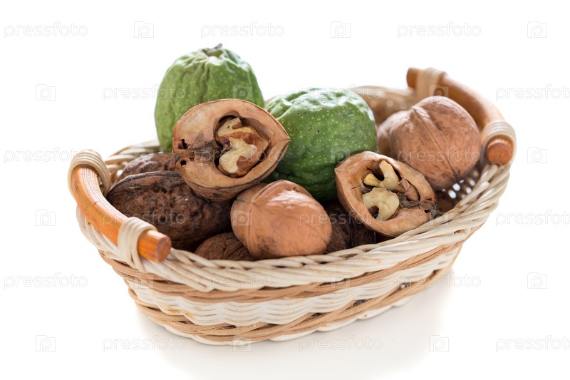 Грецкие орехи в плетеной корзине