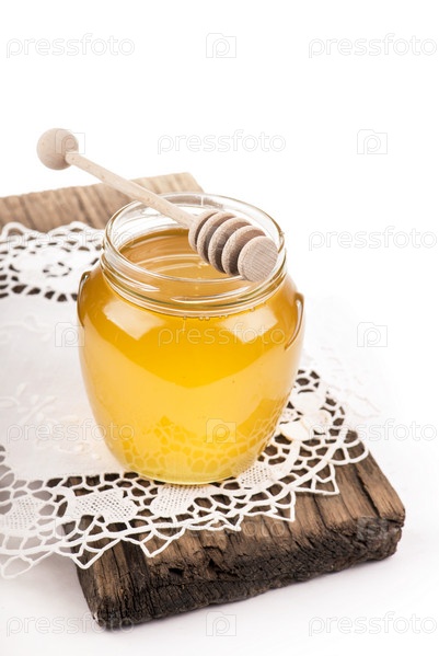 Мед в банке на деревянных досках