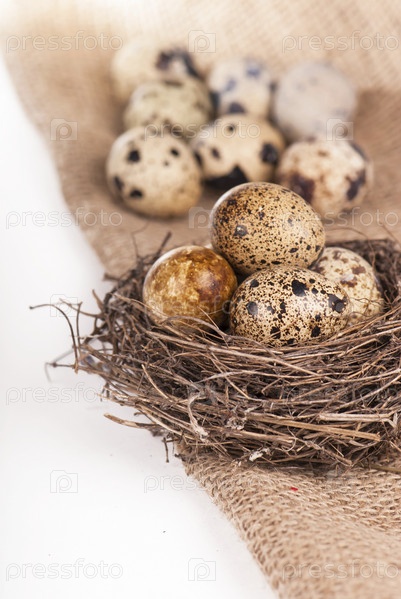 Гнездо с перепелиными яйцами