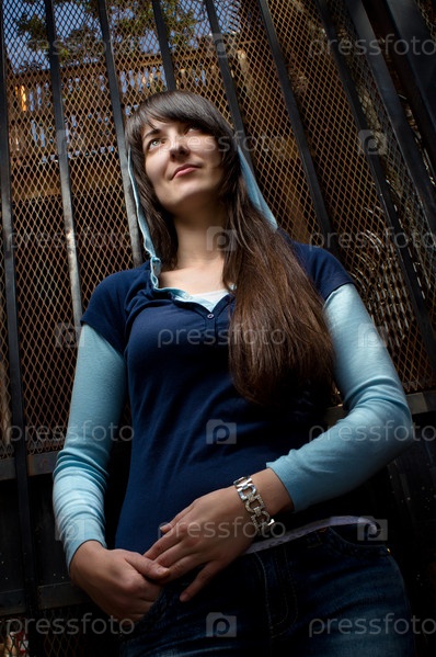 Портрет девушки возле железных ворот
