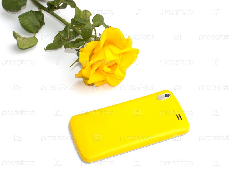 Желтая Роза и телефон на заднем плане изолированные