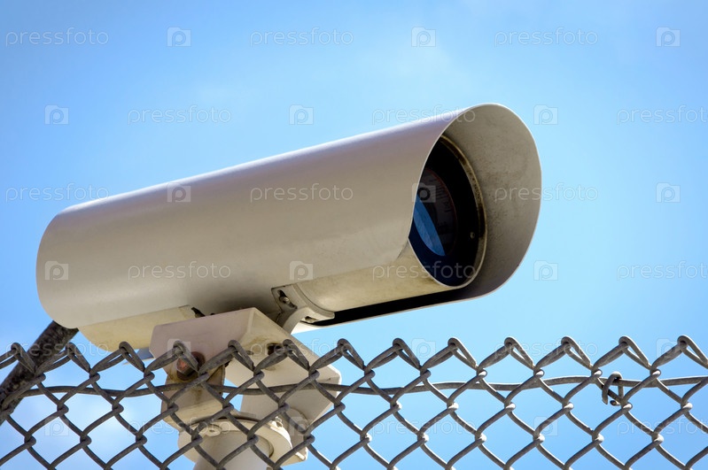 Камера наблюдения на фоне голубого неба