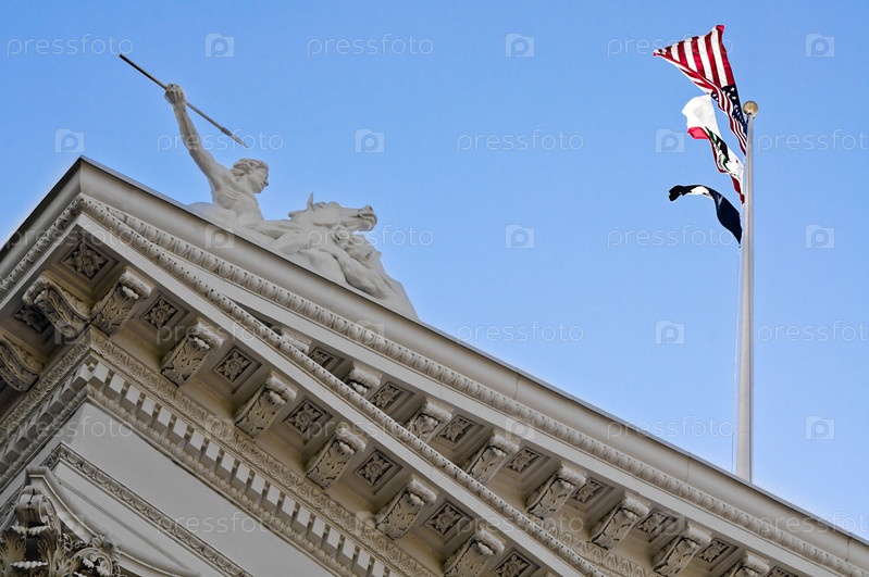 Флаги штата Калифорния и США на Белом Доме в Сакраменто