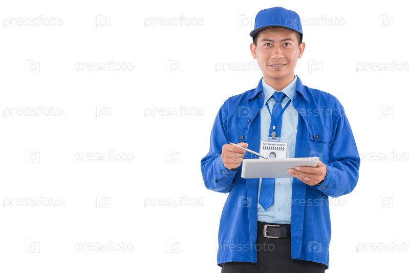 Доставка человек с планшетного компьютера