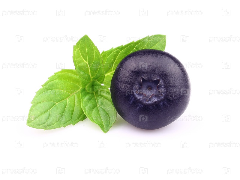Ягода черники и листья мяты на белом фоне