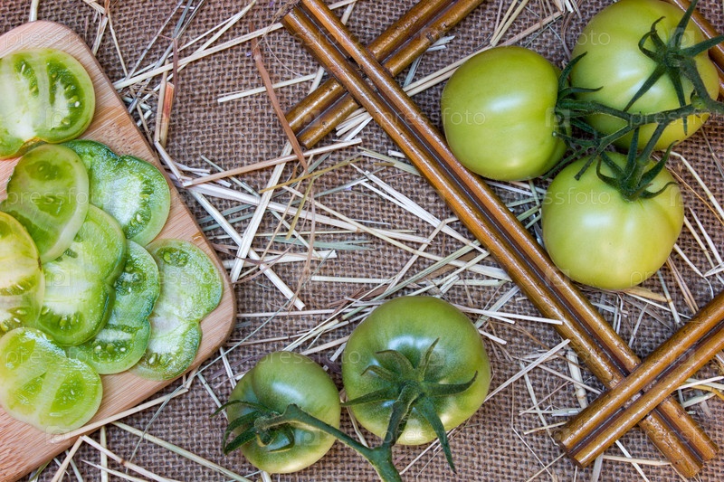 Вечнозеленые помидоры на фоне текстиля