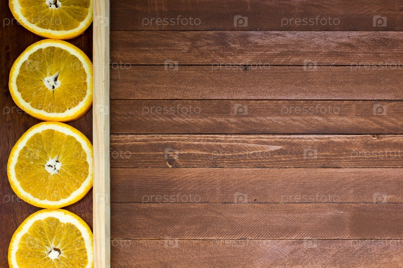 Свежие апельсины на фоне деревянной доски