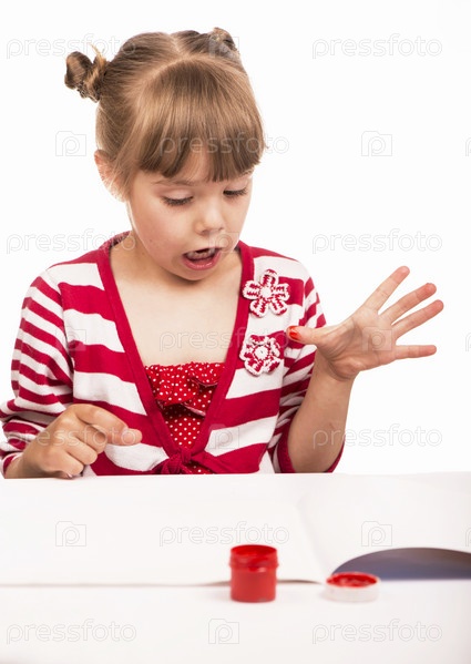 Маленькая девочка рисует краски