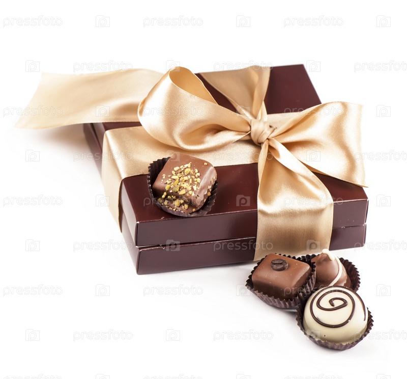 Коричневый коробка конфет и золотой лентой