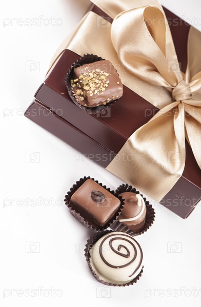 Коричневый коробка конфет и золотой лентой