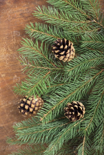 Кадр из ветви елки на старой древесины