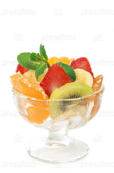 Стеклянная чаша с салатом из свежих фруктов