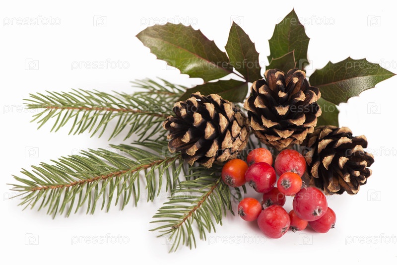 Рождественские сезонные, веточки с шишками