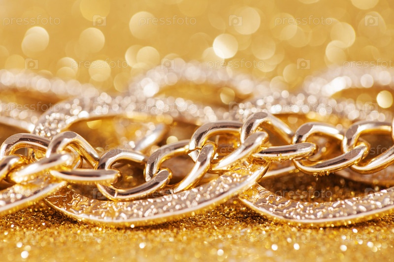 Крупным планом золотую цепочку. Люкс золотой блеск фон