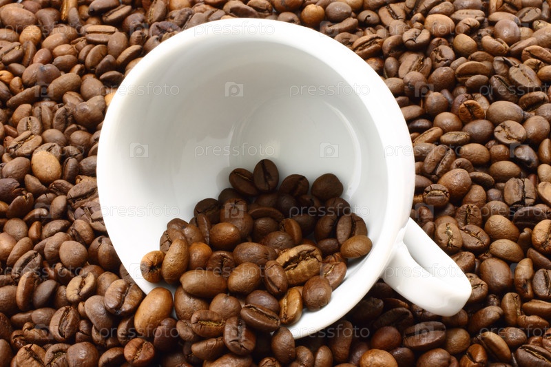 Кофейная чашка и зерна