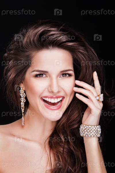 Портрет красивая брюнетка девушка с роскошными аксессуарами