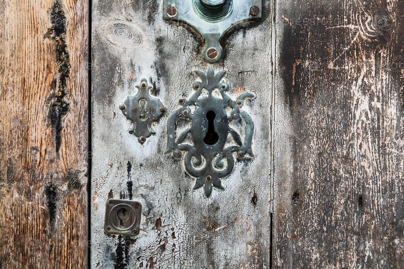 Замочная скважина над возрасте серый и коричневый старого дерева