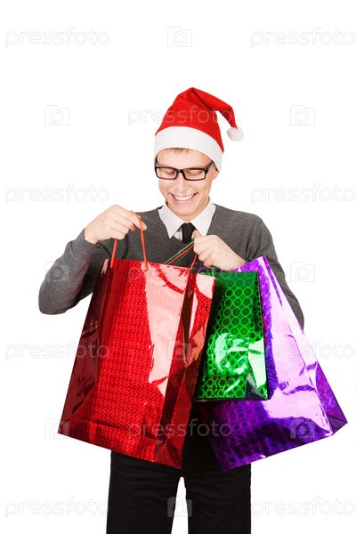 Привлекательный юноша в шляпе Санты
