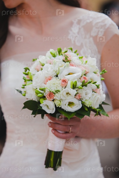 Красивый белый свадебный букет невесты
