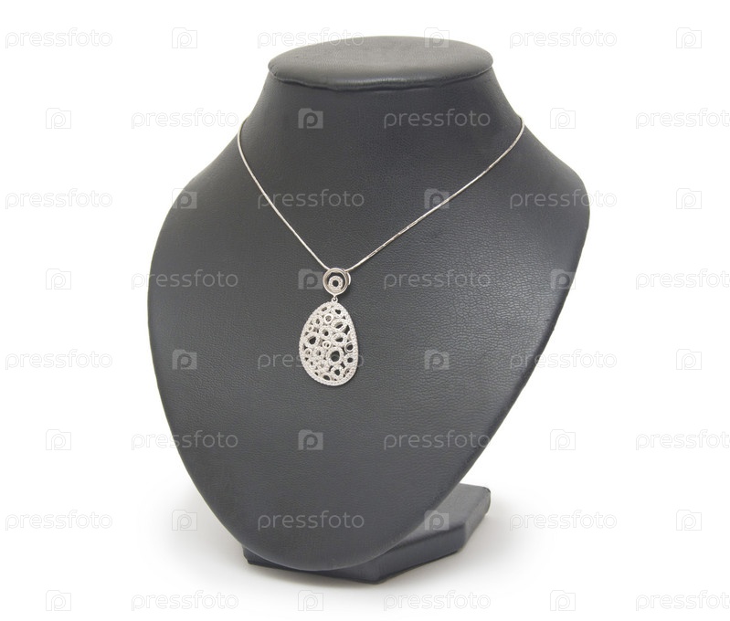 Красивые Серебряные бусы на манекен, изолированные на белом фоне