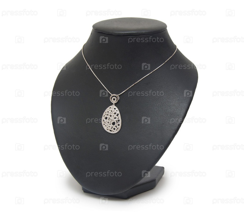Бриллиантовое колье на черный манекен, изолированные на белом фоне