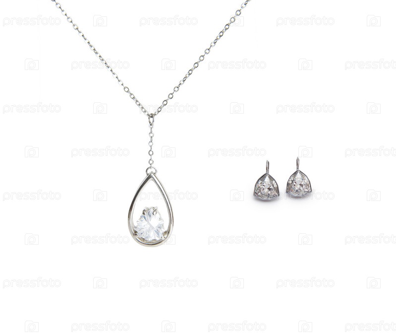 Красивые серьги серебряные колье и алмазов, изолированные на белом фоне