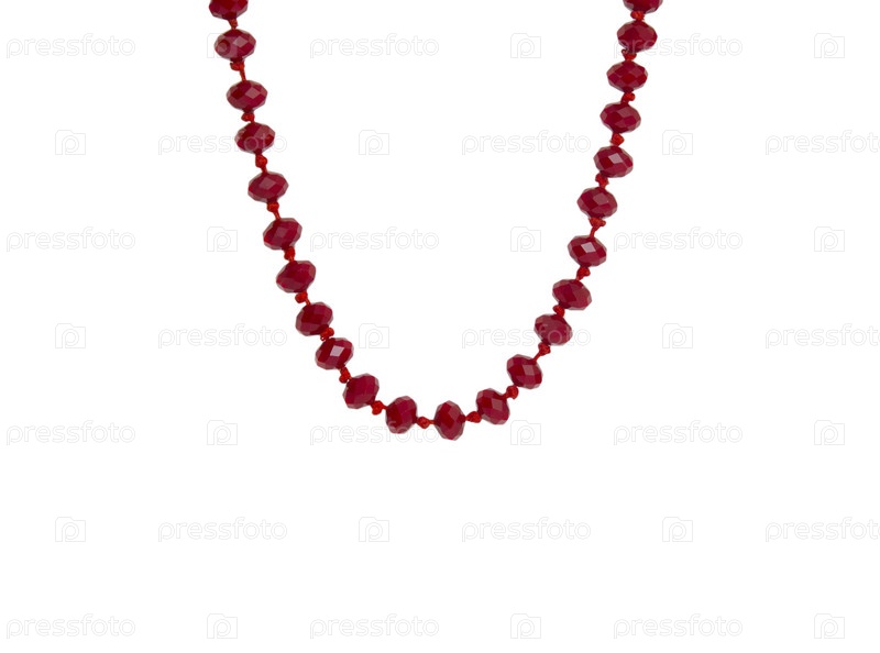 Красные бусы ожерелье, изолированные на белом фоне