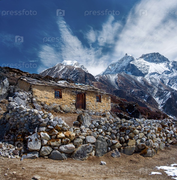 Каменный домик в горы, вдоль тропы на Эверест базовый лагерь, Непал Гималаи