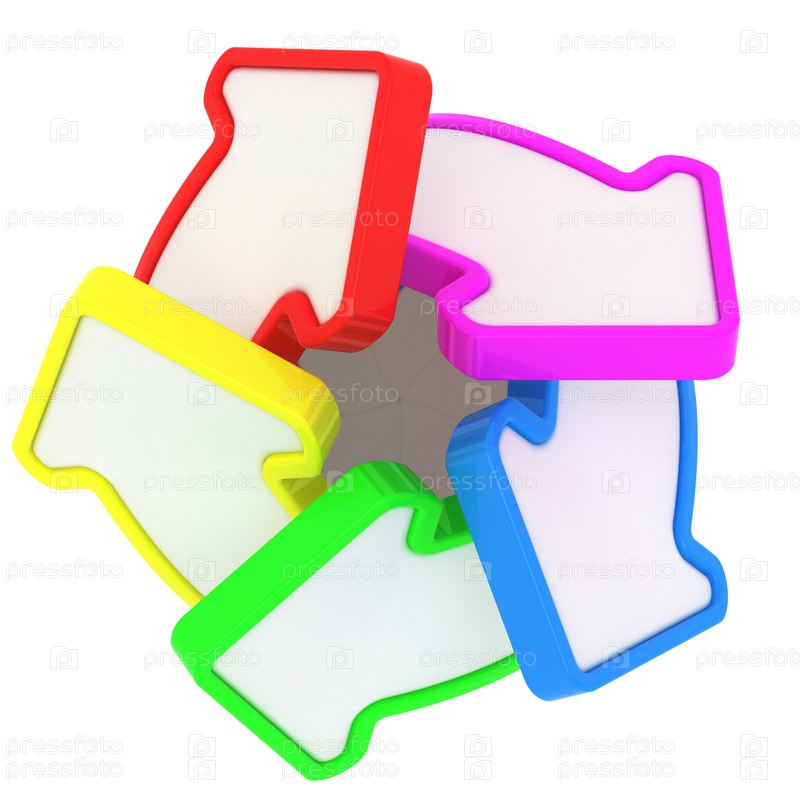 Пять разноцветных стрелок, изолировано на белом фоне