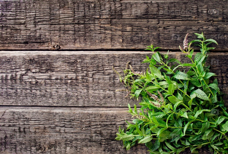 Свежие листья мяты на старой древесины фоне