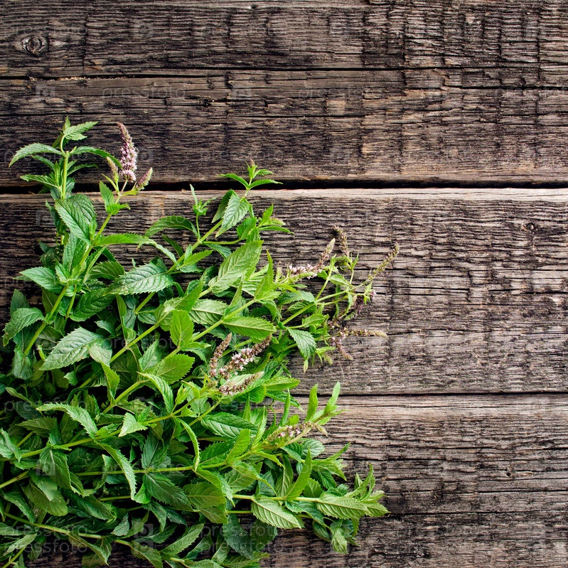 Свежие листья мяты на старой древесины фоне