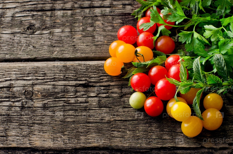 Помидоры Черри на фоне древесины