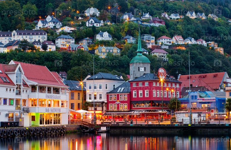 Исторические здания на улице в Бергене, Норвегия