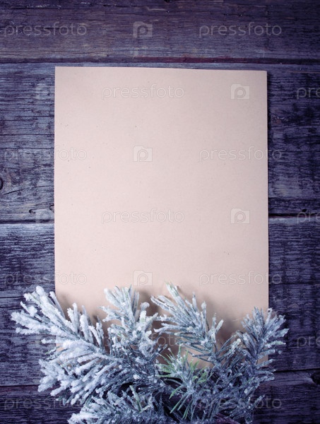 Карта с елкой на деревянных фоне