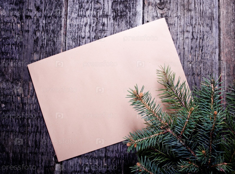 Карта с елкой на деревянных фоне