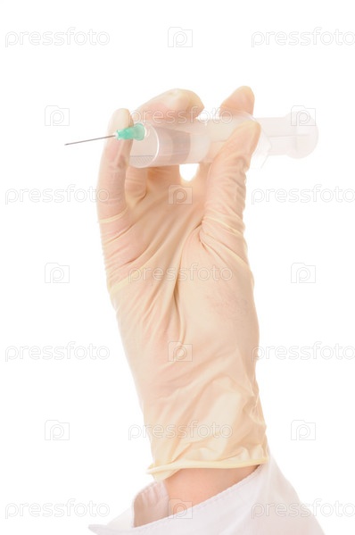 Рука с медицинским шприцем