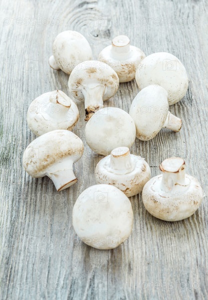Шампиньоны на деревянном фоне