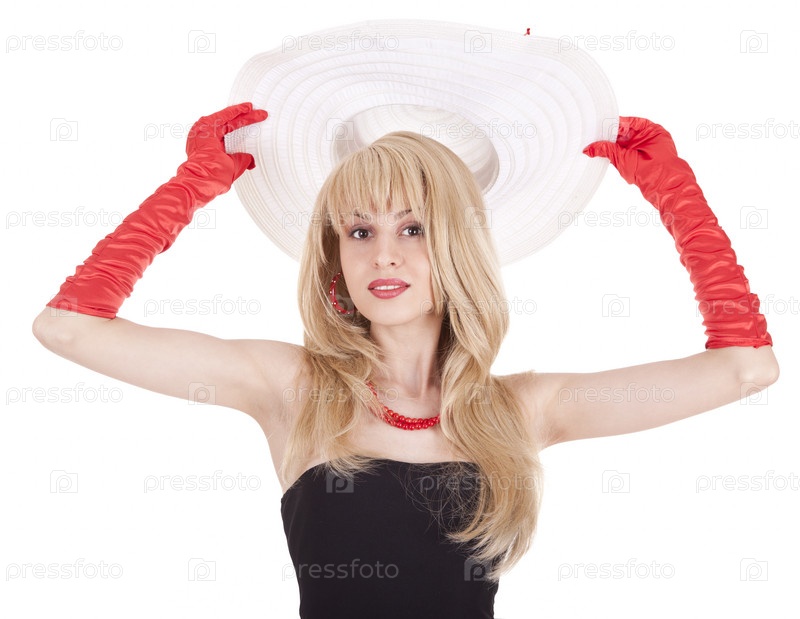 Девушка в шляпке и красных перчатках