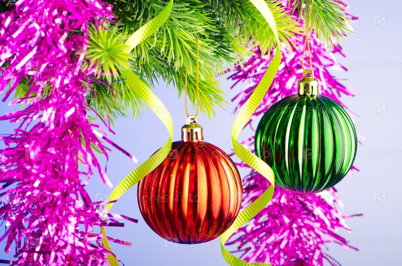 Новогодние игрушки, висящие на елке