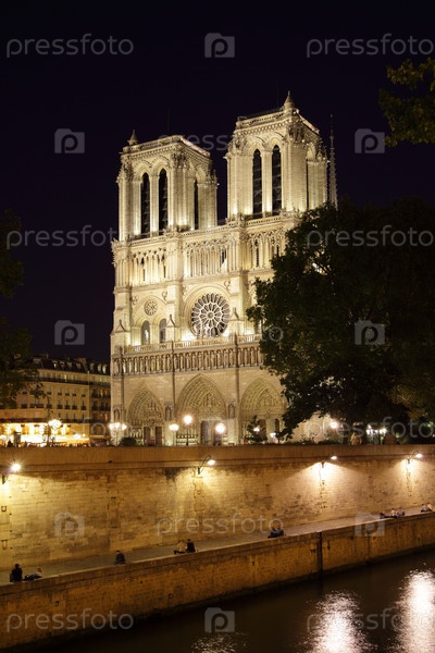 Ночной вид Нотр-Дам де Пари, Франция