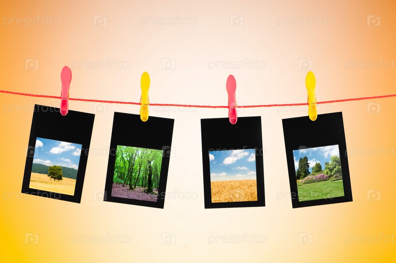 Фотографии, висящие на прищепках