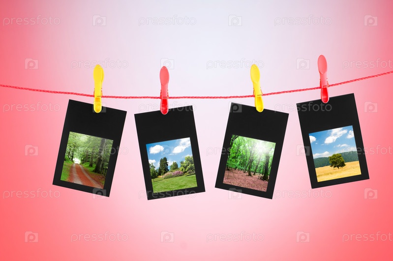 Фотографии, висящие на прищепках