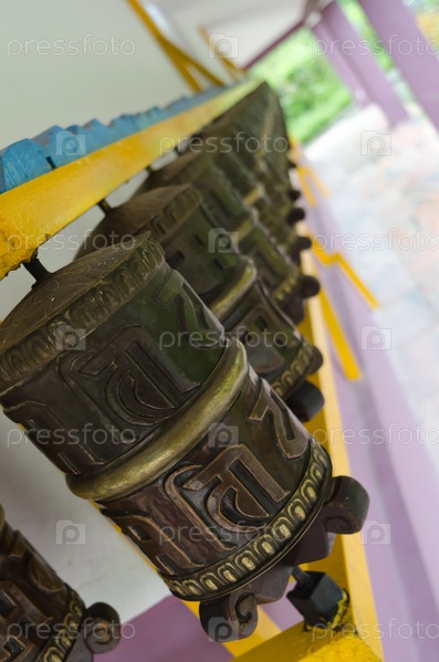 Молитвенные колеса в буддийском храме