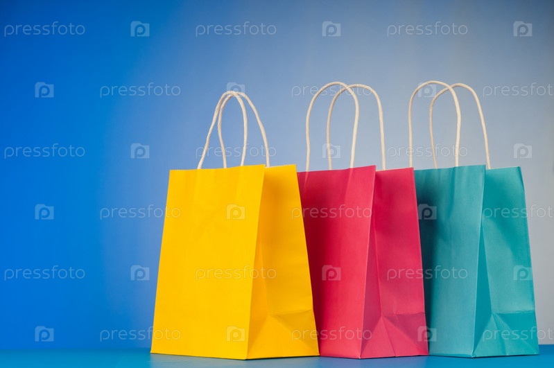 Три бумажных пакета на голубом фоне