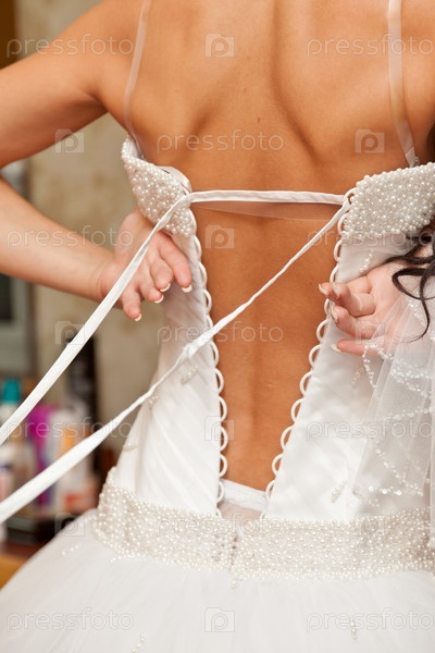 Невесте зашнуровывают корсет