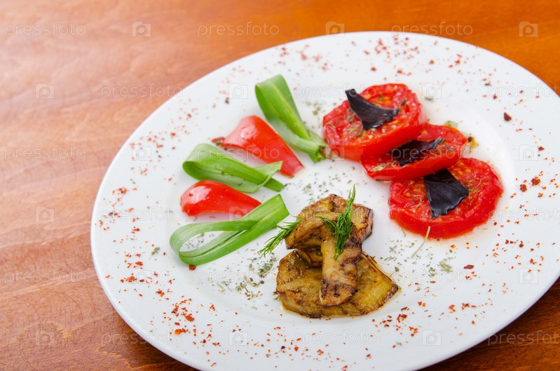 Жареные овощи на белой тарелке