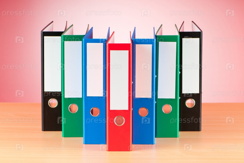 Папки для документов на столе, розовый фон