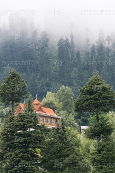 Дом в лесу на склоне горы, Северная Индия