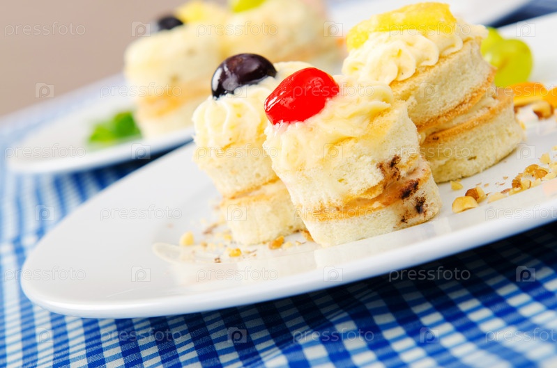 Пирожные на тарелке на столе